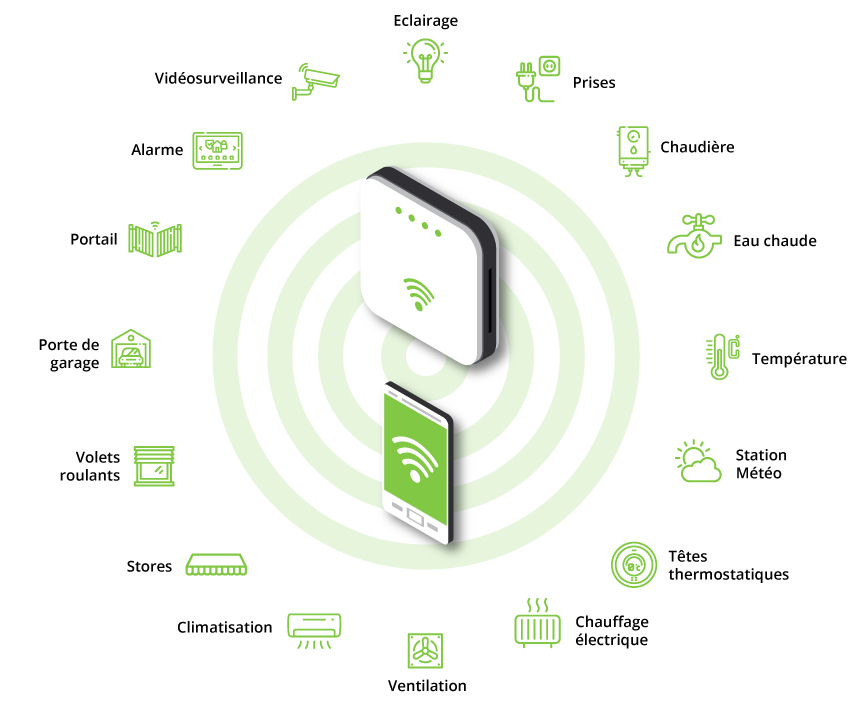 - Contrôle à distance des volets, stores ...